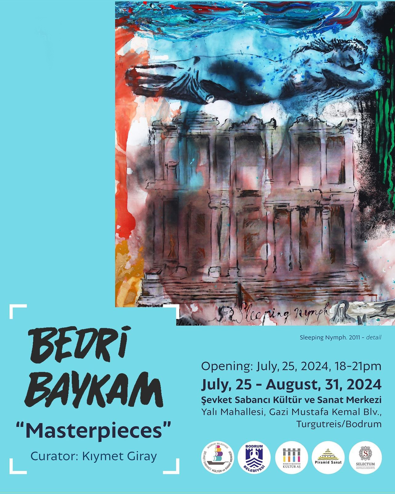 Curated by Prof. Dr. Kıymet Giray, Bedri Baykam’s “Masterpieces” exhibition will continue at the Bodrum Municipality Şevket Sabancı Cultural and Arts Center until August 31, 2024.