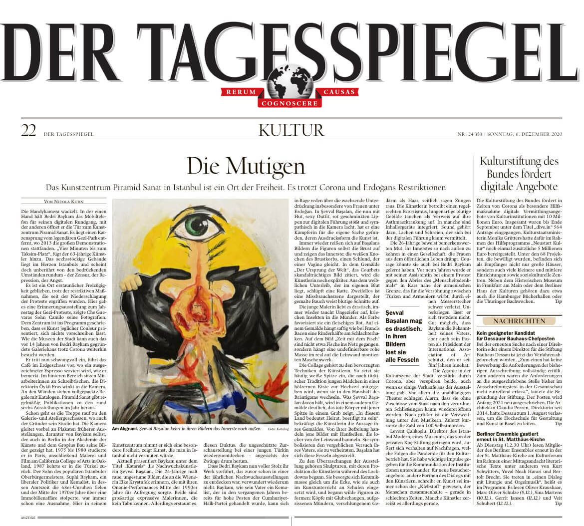 The most important Berlin newspaper der Tagesspiegel’s influent critic Nicola Kuhn has published an extensive and large entitled " the courageous" article about Piramid Sanat/Art center, it’s Founder Bedri Baykam and the showing artist Sevval Basalan: “Piramid Sanat is a spot for Freedom in the Istanbul art scene”https://www.tagesspiegel.de/kultur/istanbuls-kulturszene-das-kunstzentrum-piramid-sanat-ist-ein-ort-der-freiheit/26690604.html
