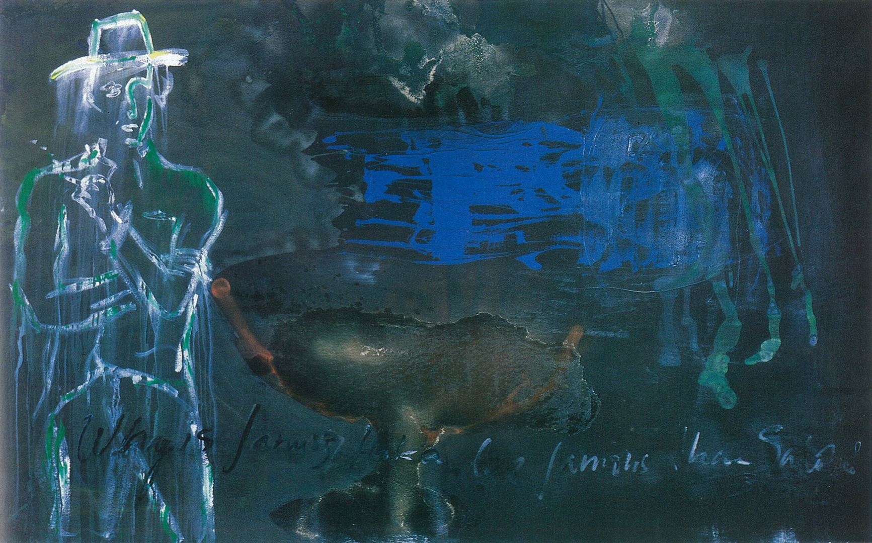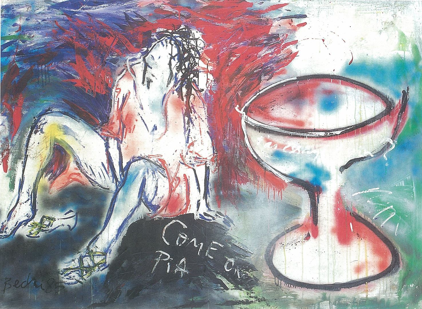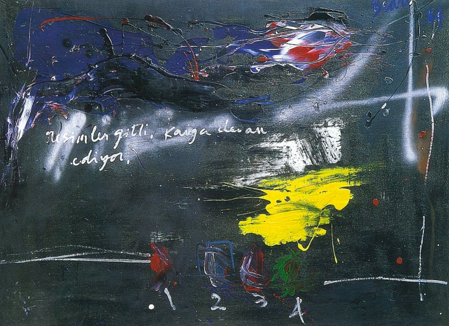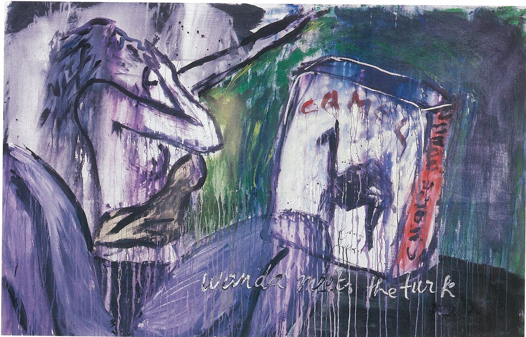 Works done mostly on canvas and some on paper, in Neo-Expressionist style, using a lot of graffiti, female nudes, self-portraits. The subject matters range from abstractions to personal life, sexual subjects, as well as life, death, metaphysics. The artist's struggle to be recognized by the western establishment which he accuses of being a closed club of 5-6 western country's artists, is also included in paintings such as "It's Gonna Be a Very Long Fight", "Graffiti Guy Posing in Front of His Work", "Why Me?". “Wanda Meets the Turk” Spontaneous works using drips, splashes, free styled figures, rich textures. Canvases average approximately 150x220 cm (5x8 feet) and works on paper 70x100 cm (30x40 inches).