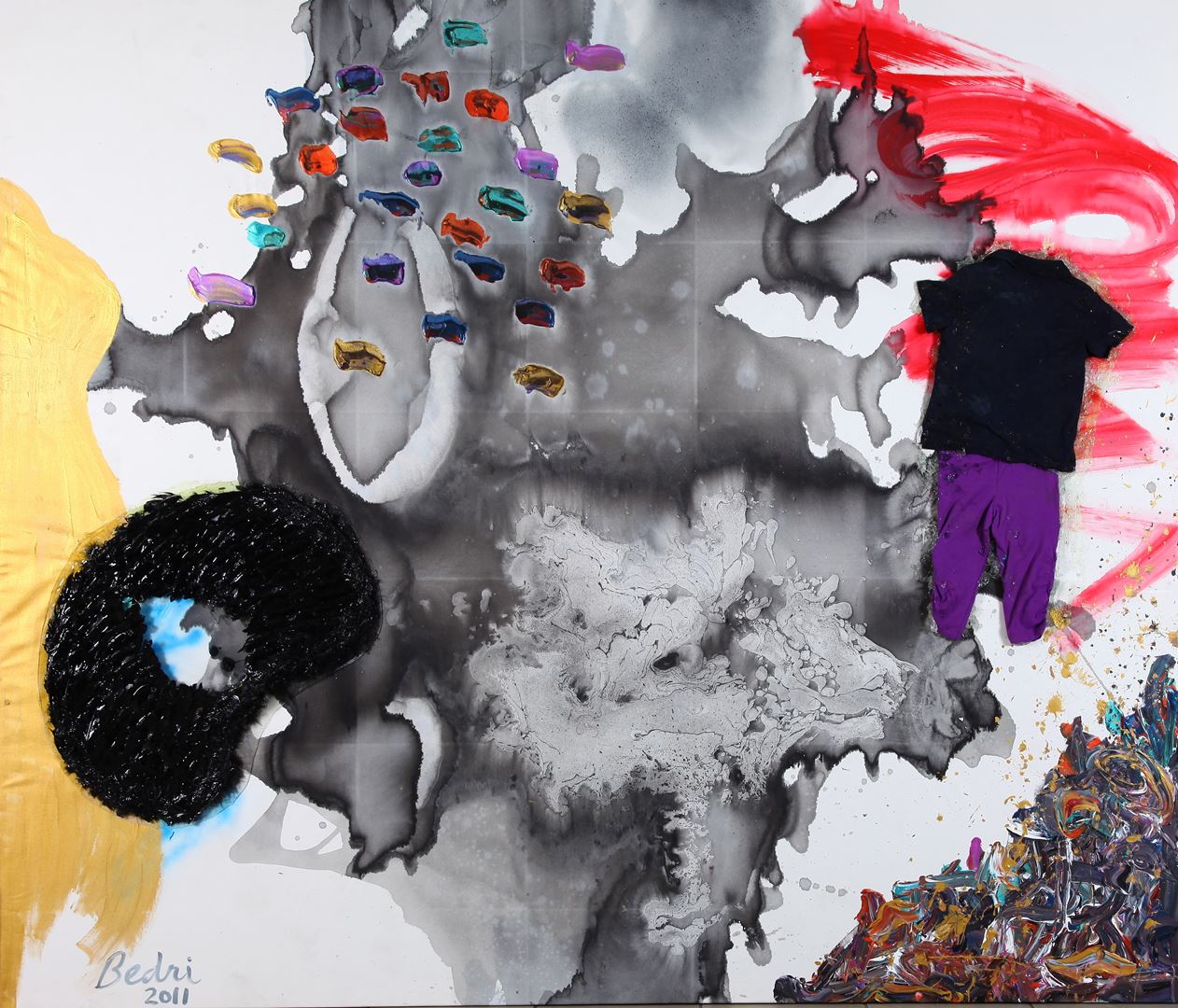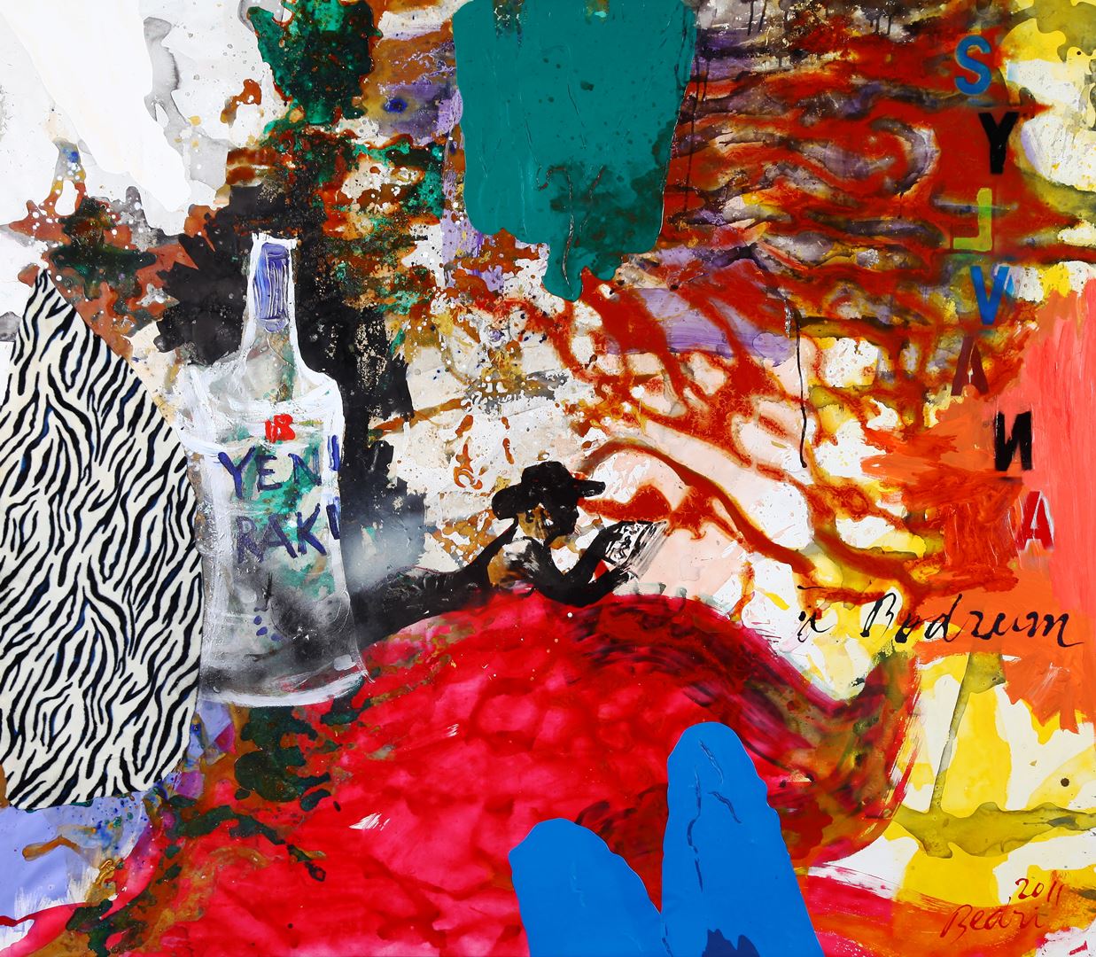 The paintings, according to Baykam, summarize and make a synthesis of all his art. Although they remind the viewer of the works done by artist in the early days of Neo-Expressionism at the start of the ‘80s, these works are much more a synthesis of the artist’s different periods, such as “The Transparent Layers’ (1998-99), “The Real-Fakes” (1987-1992), “The Harem Intrigues” (2000-2002) and “Lolitarte” (2006). Collages from endless sources melt together with layers of paint. These Works mature in much longer periods of time. This series includes many details of his own history, and the title of the series indicates his relationship with history and with his own history. All these factors make the paintings by Baykam timeless pieces.
