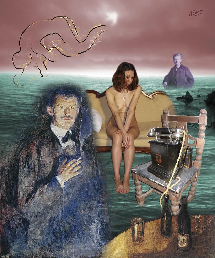 Through 13 mostly large 4D lenticular works, Bedri Baykam reinterprets the work of the Norwegian artist. After an intensive and long research into the life and the works of Munch, several travels to Oslo and to Aasgaardstrand, Baykam invites the public to dive into the depth of Munch's existential pangs. Being impregnated with his intimacy, his solitude and his isolation, Baykam empathically projects himself in specific eras of Munch's life, having the desire to express in his own way all the strong feelings and internal combat Munch had towards life.