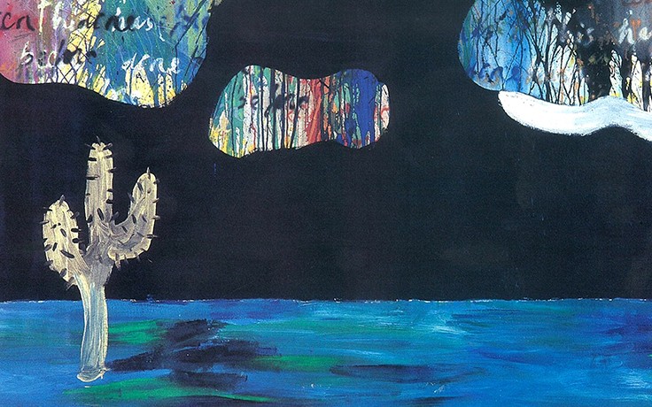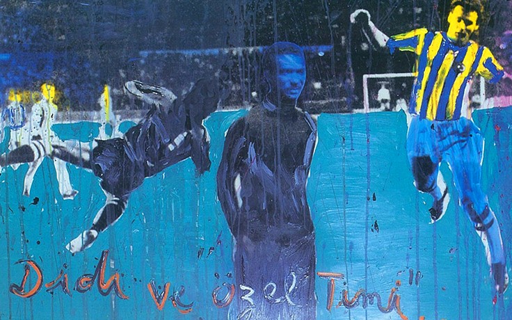 Works done mostly on canvas and some on paper, in Neo-Expressionist style, using a lot of graffiti, female nudes, self-portraits. The subject matters range from abstractions to personal life, sexual subjects, as well as life, death, metaphysics. The artist's struggle to be recognized by the western establishment which he accuses of being a closed club of 5-6 western country's artists, is also included in paintings such as "It's Gonna Be a Very Long Fight", "Graffiti Guy Posing in Front of His Work", "Why Me?". “Wanda Meets the Turk” Spontaneous works using drips, splashes, free styled figures, rich textures. Canvases average approximately 150x220 cm (5x8 feet) and works on paper 70x100 cm (30x40 inches).
