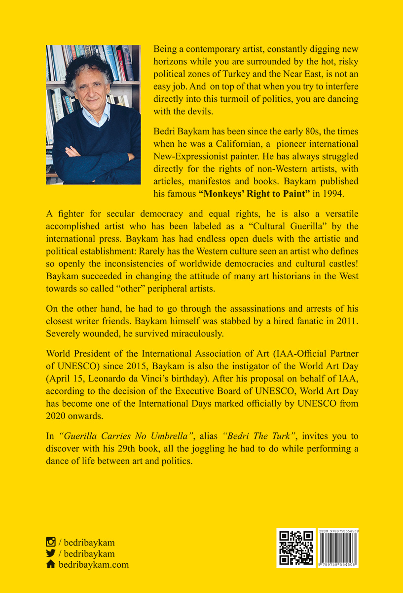World-renowned painter and writer Bedri Baykam's 30th book “Guerilla Carries No Umbrella” (Guerrilla Has No Umbrella) is meeting with the readers under the label of Piramid Publishing. The book, which is released in English, consists of two parts, art and politics. In addition to Baykam's published articles and interviews, Guerilla Carries No Umbrella also includes manifestos written by the artist on the rights of non-Western artists, which he has defended since his time in America.