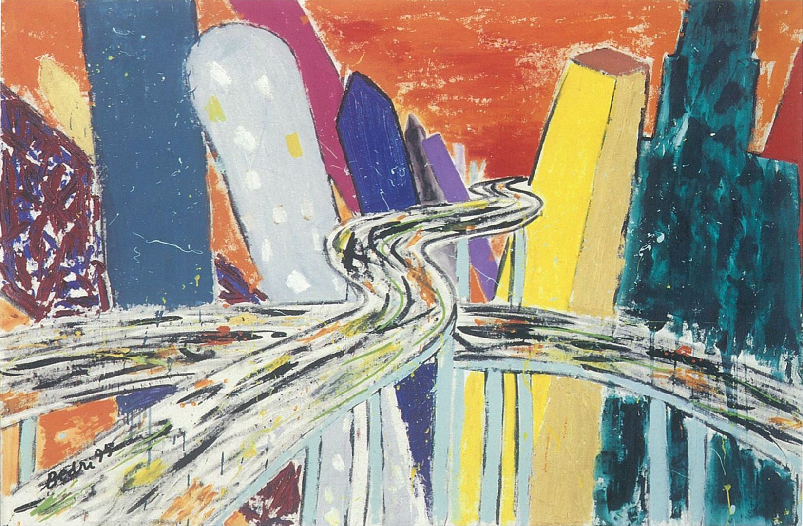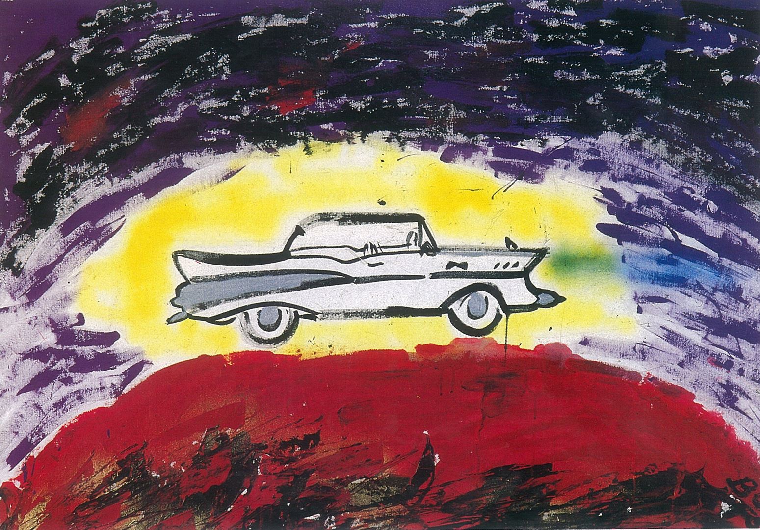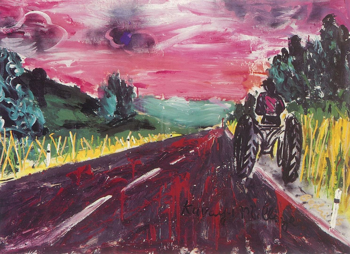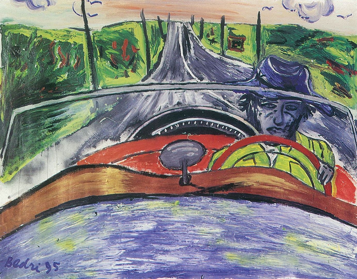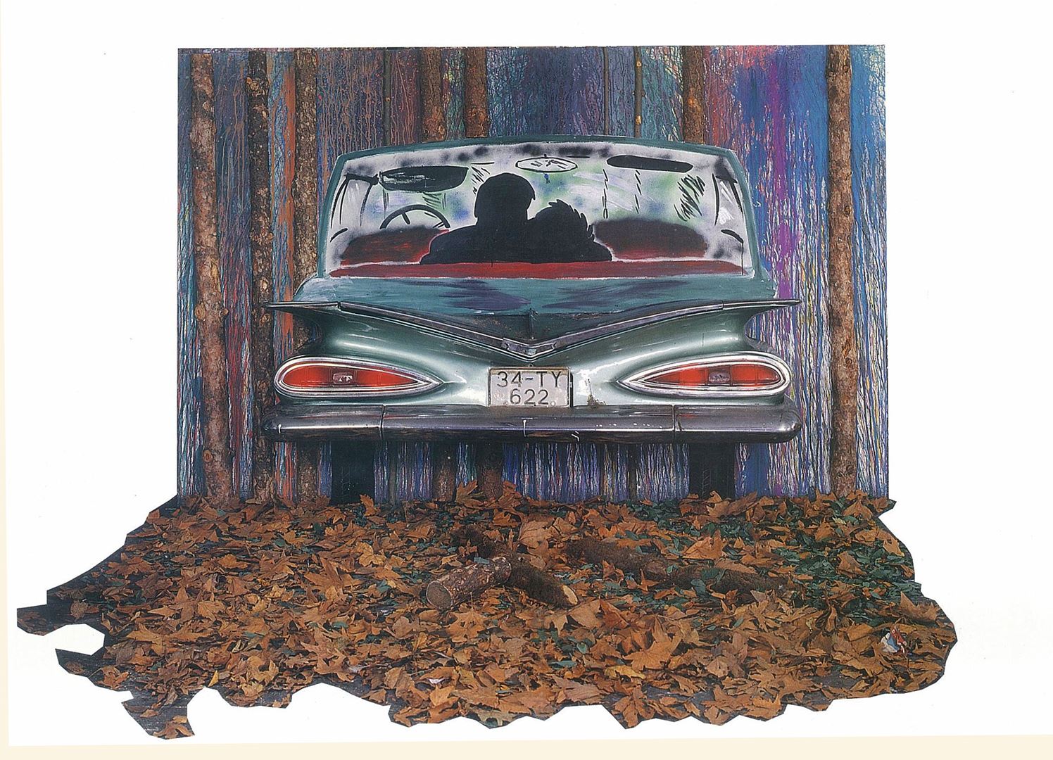 Bu araba ve yol serisinde dev boyutlu, gerçek araba parçaları (kumanda panosu, tampon, vs) tiyatroya özgü ortamlarda, kontrplak resimlerin bir parçası olarak kullanılmıştır. Bu seri, ressamın tutkularından biri olan "araba kullanmak, uzun yol yapmak" konulu, orta ve küçük boy resimlerini de içerir. Serinin en önemli çalışması "Orman Aşıkları" isimli konstrüksiyon yapıttır.