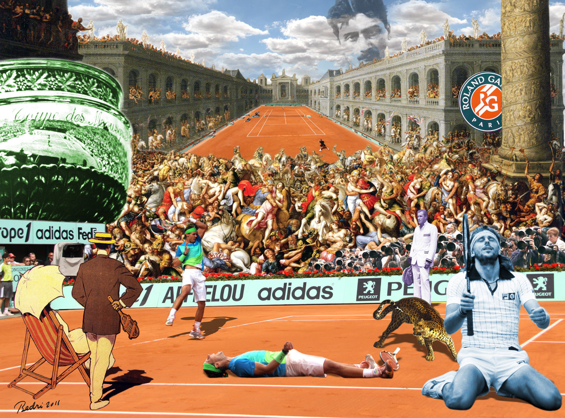 Les Légendes de Paris : Roland Garros, Borotra et Yannick. 4D - lentiküler çalışma, 180x245cm, 2011