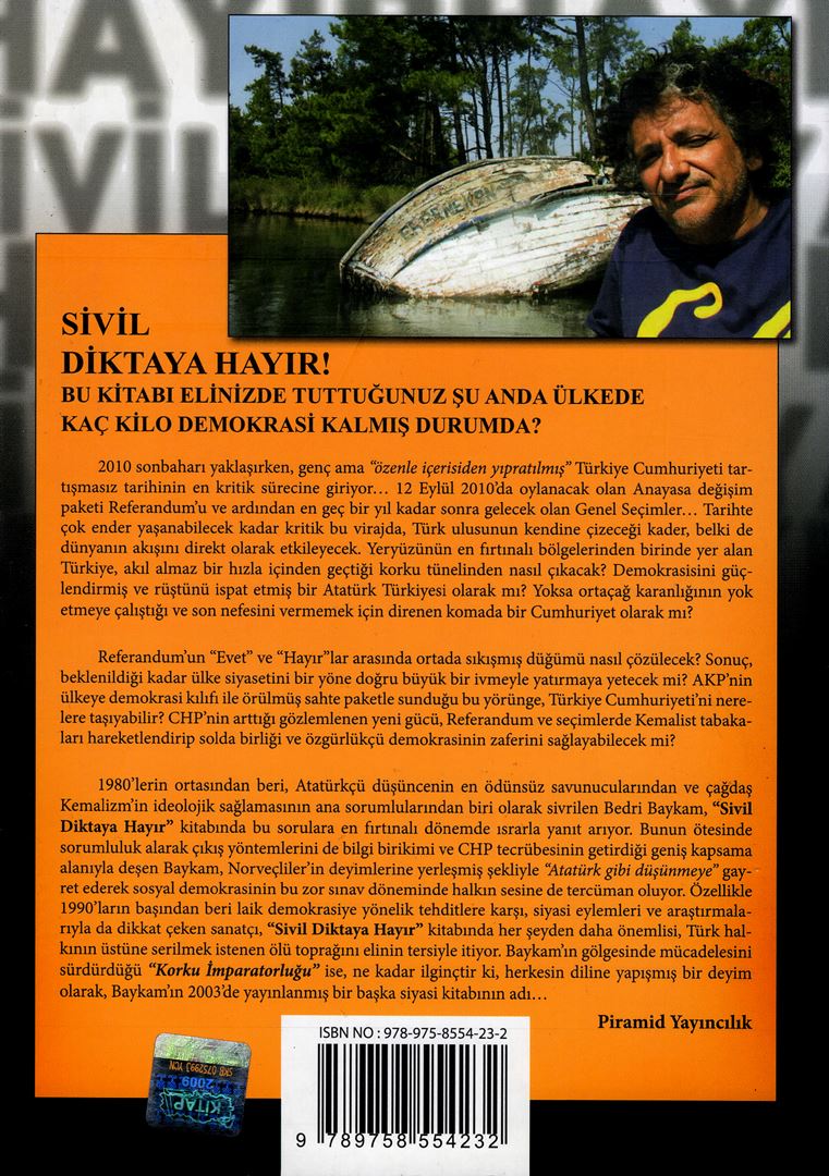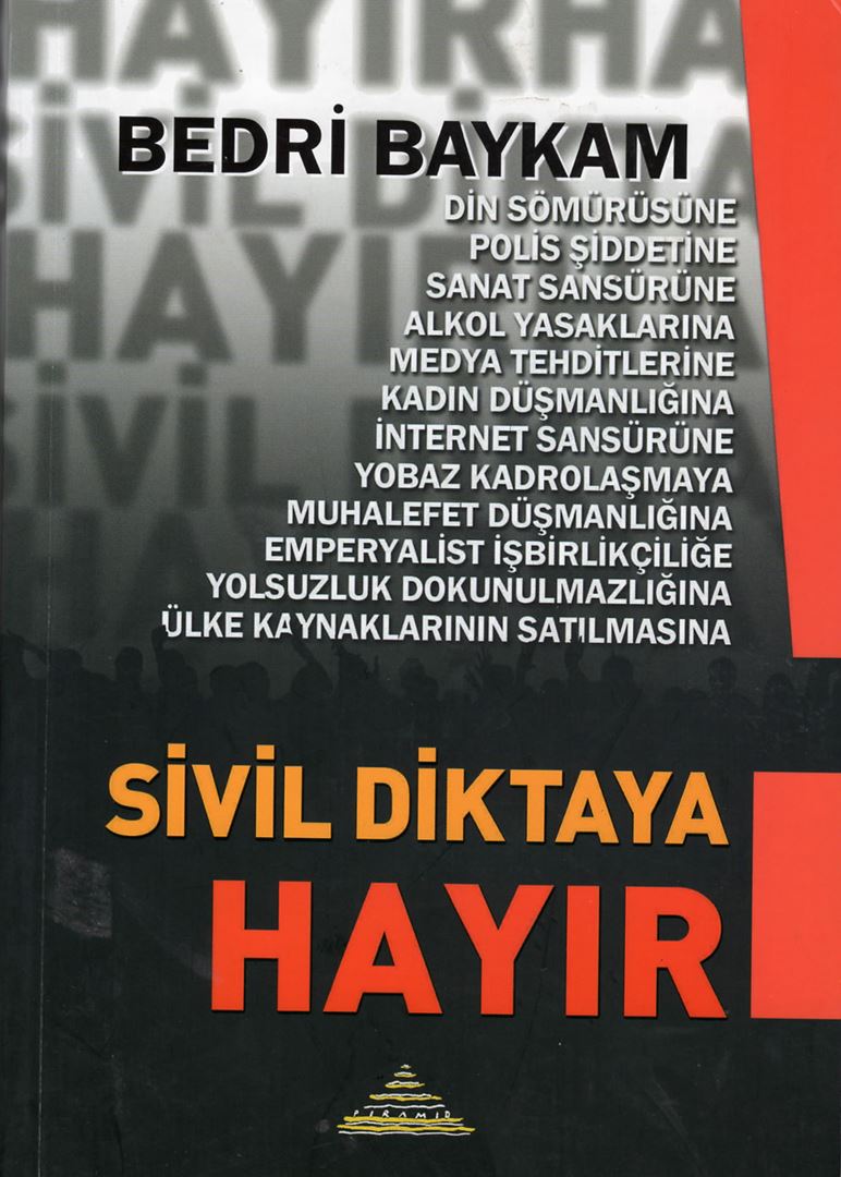 1990’ların başından beri laik demokrasiye yönelik tehditlere karşı, siyasi eylemleri ve araştırmalarıyla dikkat çeken Bedri Baykam, “Sivil Diktaya HAYIR!” kitabında, Türk halkının üstüne serilmek istenen ölü toprağını elinin tersiyle itiyor.