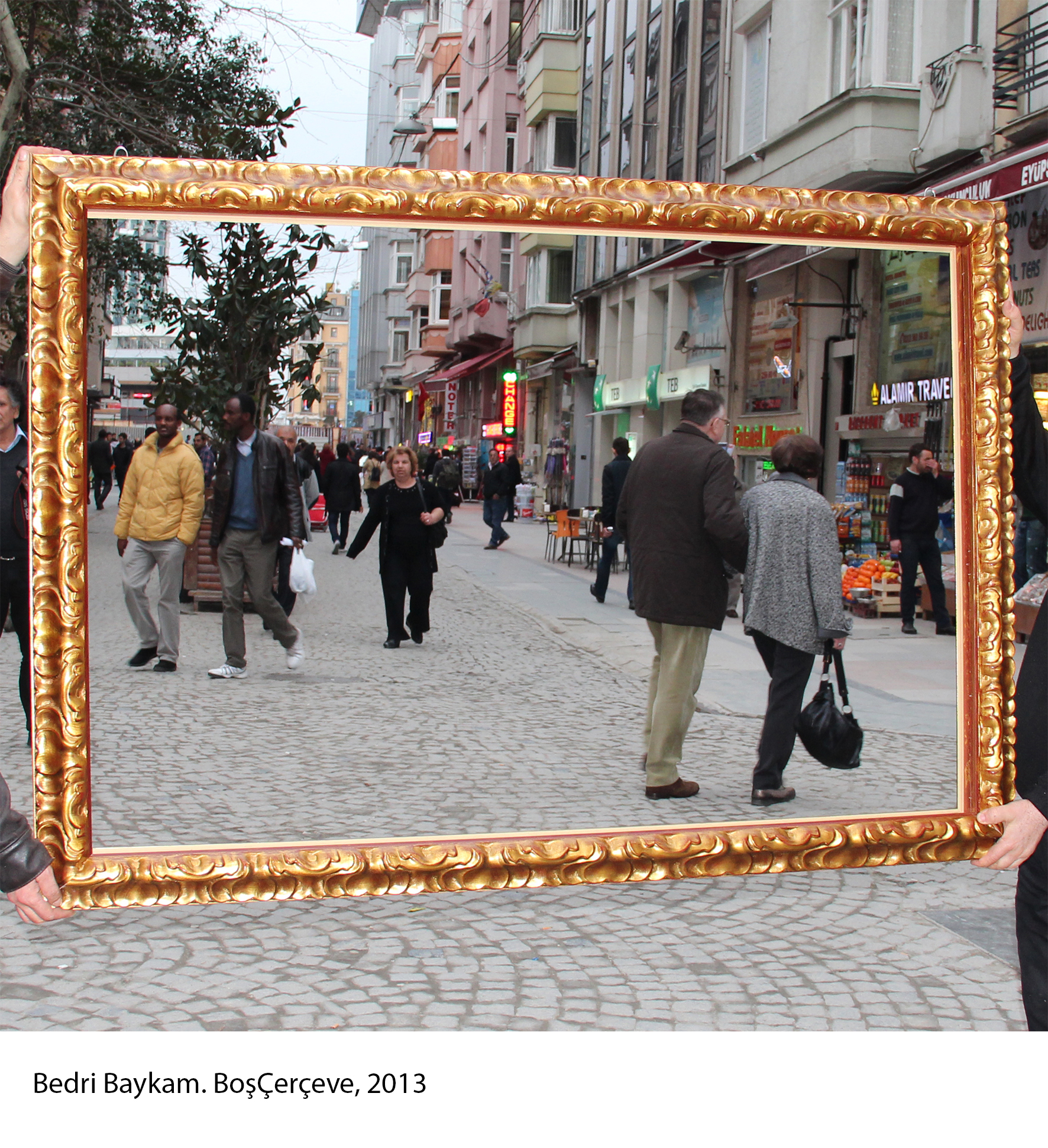 2013, BoşÇerçeve serim, Marcel Duchamp’ın sürekli “yeni kuşaklarca” tekrarlanan Ready-Made (Hazır-Yapım) işlerinden yola çıkarak, bu kavramın nesne ile ilişkisini koparıp uzama açılması ile ilgilidir. Çift taraflı olan eserim, ister galeri ister müze ister sokak olsun, 360o ve her an değişken bir nevi “görüntü fabrikası” haline dönüşmektedir.